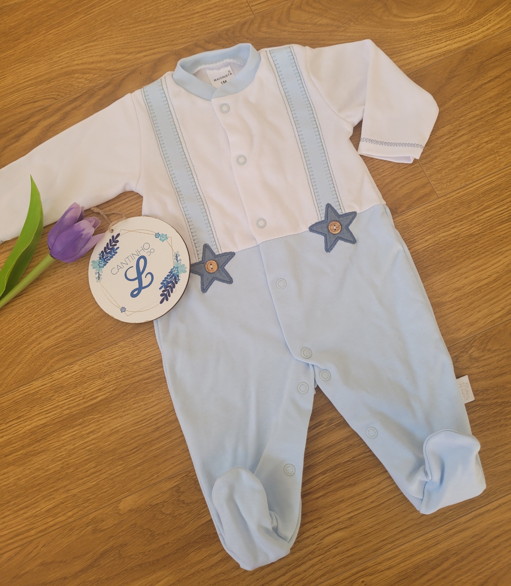 Babygrow em algodão com abertura à frente super confortável... Na parte de trás tem um estrela gigante que o torna giríssimo...