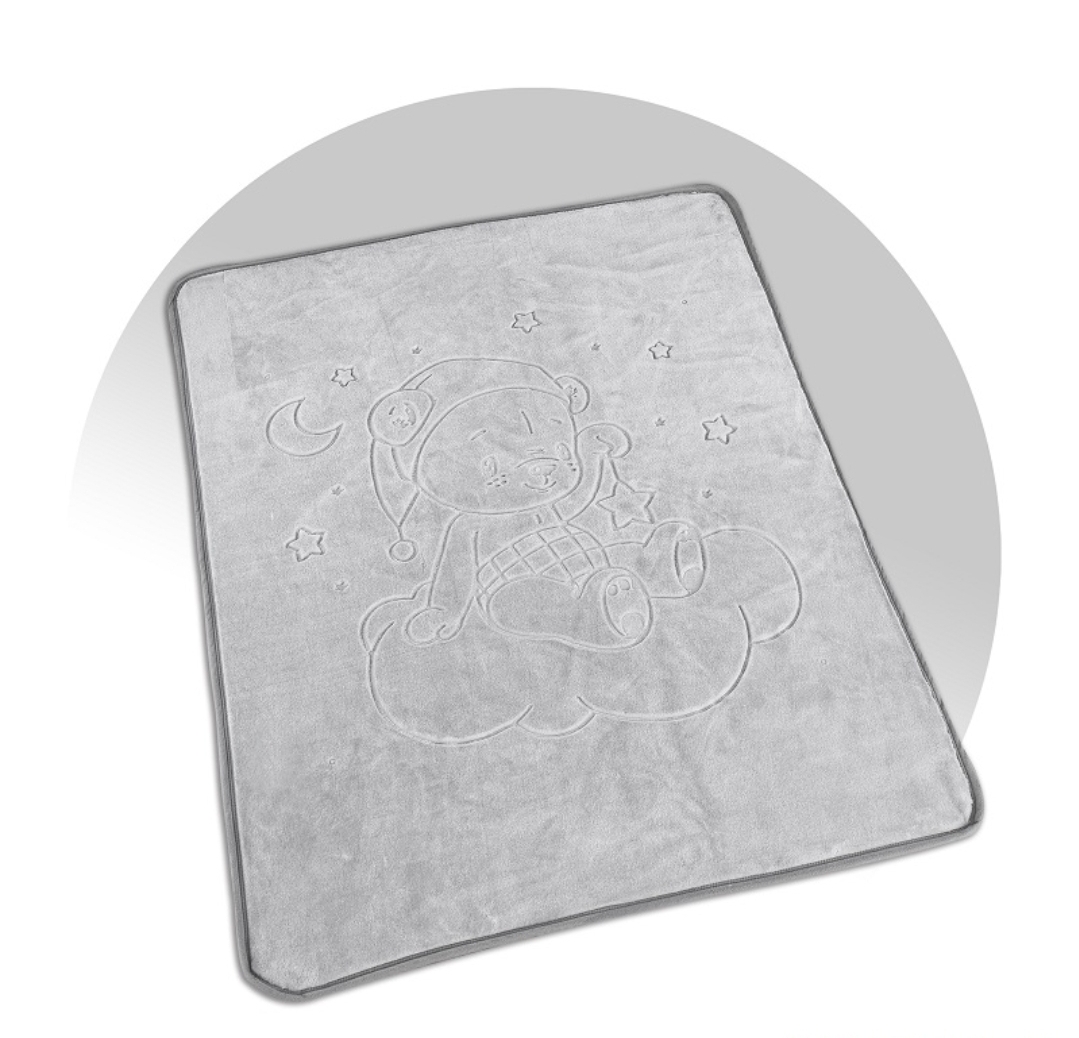 • Cobertor cinzento com urso a dormir em nuvem e estrelas em relevo