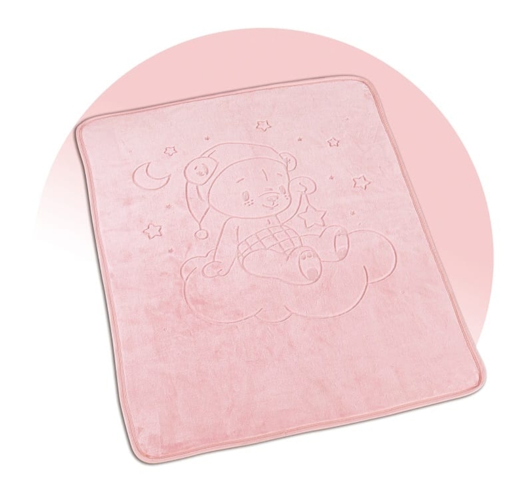 • Cobertor rosa macio com desenho de ursinho e nuvem em relevo