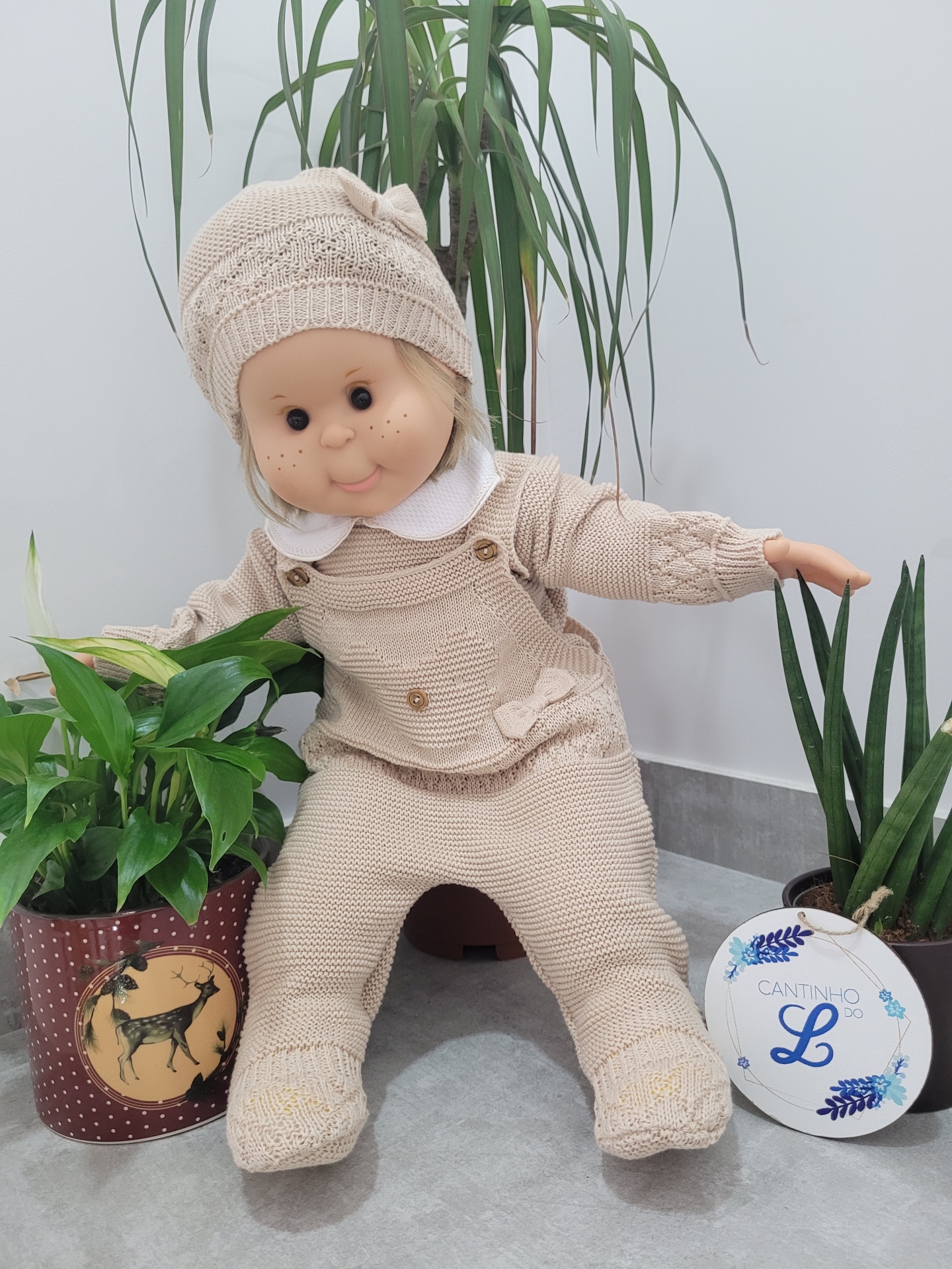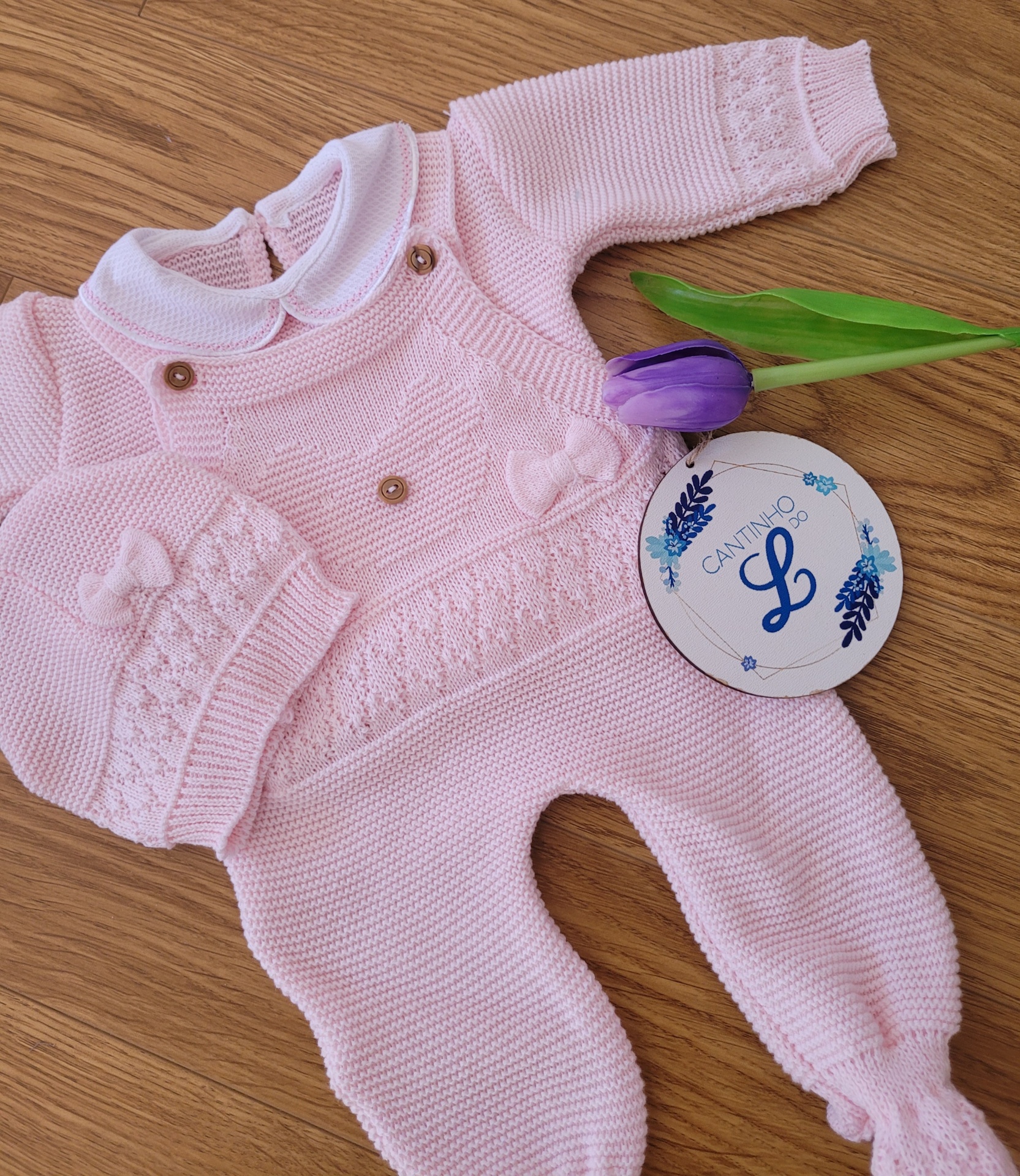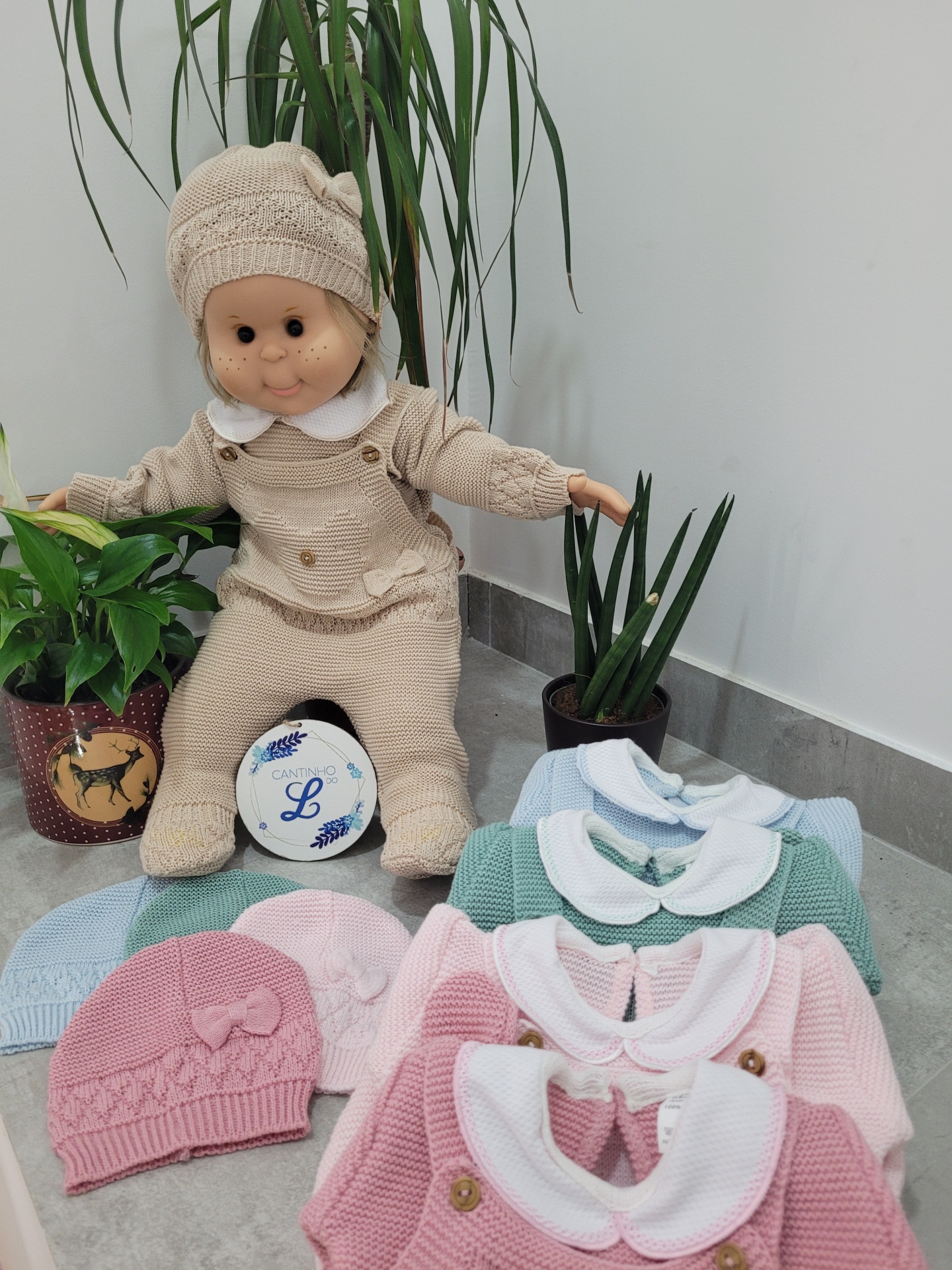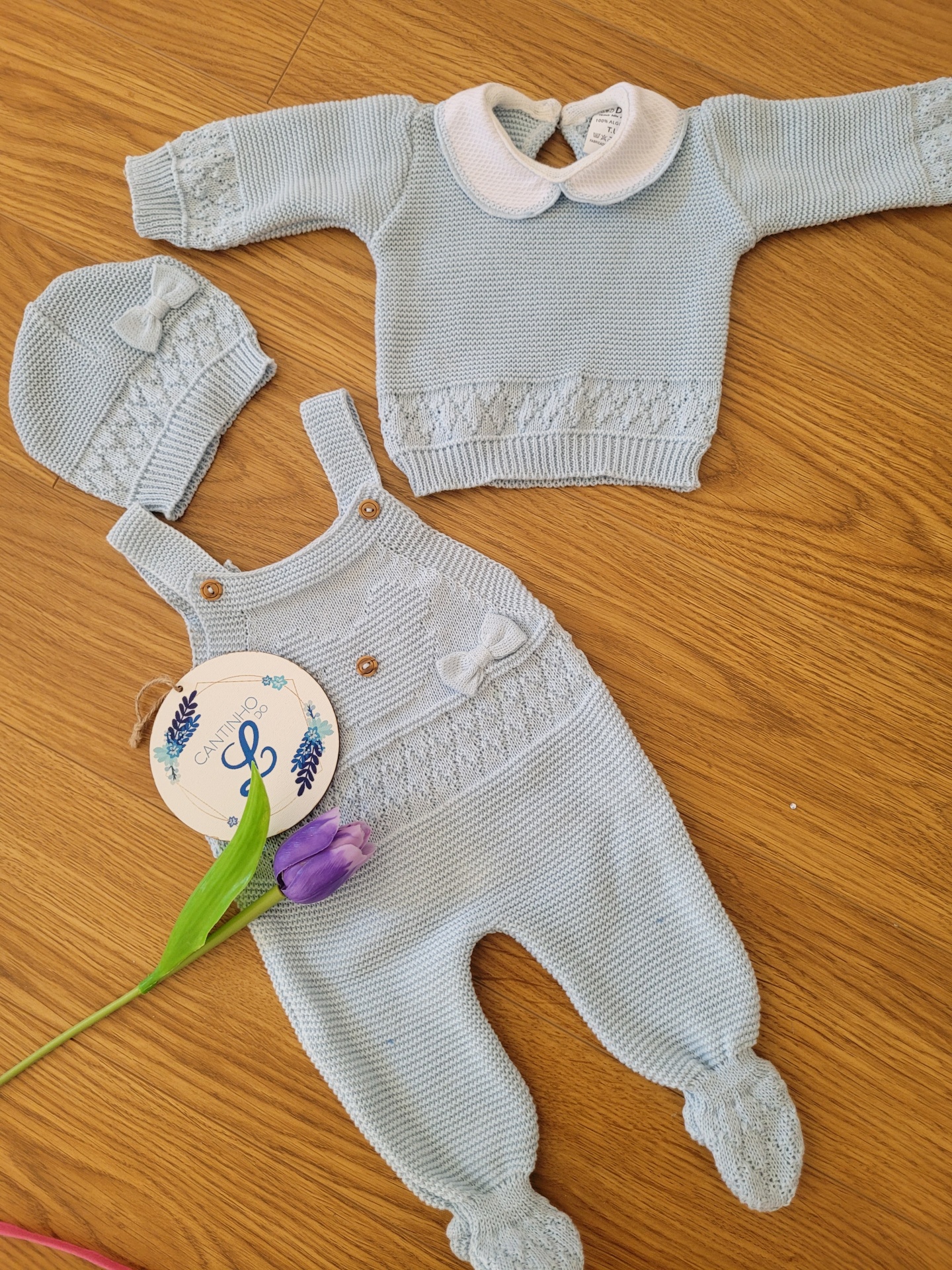 Conjunto 3 peças ursinho 19,50 € Desconto de %. Partilhar Cor Camel Rosa bebé Rosa velho Verde Azul bebé Comprar Contactar Simplesmente lindo 🥰 Conjunto de 3 peças: jardineiras, camisola e touca. Em malha suave, de espessura fina. É muito fofinho. Tamanho único 0-2m aproximadamente Sugestão Fica lindo conjugado com a nossa manta primavera