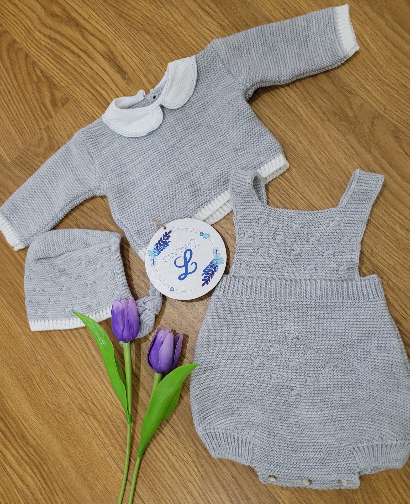 Conjunto malha CINZA 18,90 € Desconto de %. Partilhar Tamanho TU (0-3m) Comprar Contactar IRRESISTÍVEL O VERDE ! Conjunto em malha constituído por camisola, jardineira e touca... Super quentinho e confortável...Perfeito para ser usado como saída de maternidade. 100% acrílico