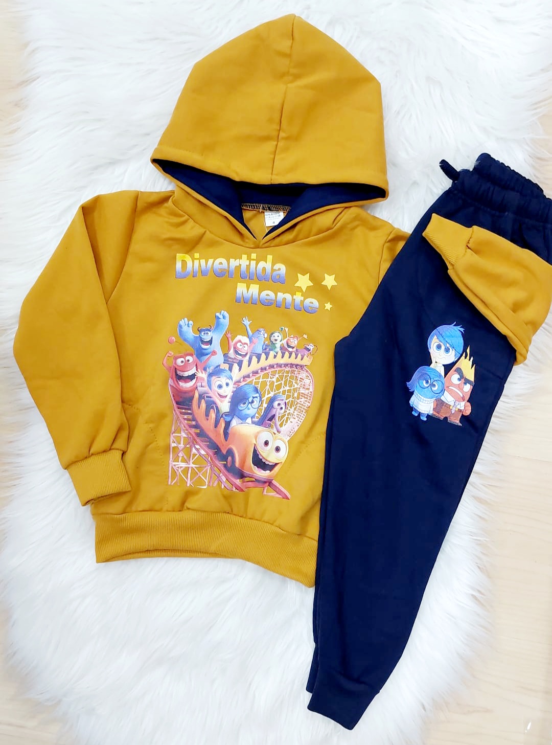 • Conjunto infantil com hoodie amarelo e calças azuis com estampas do filme