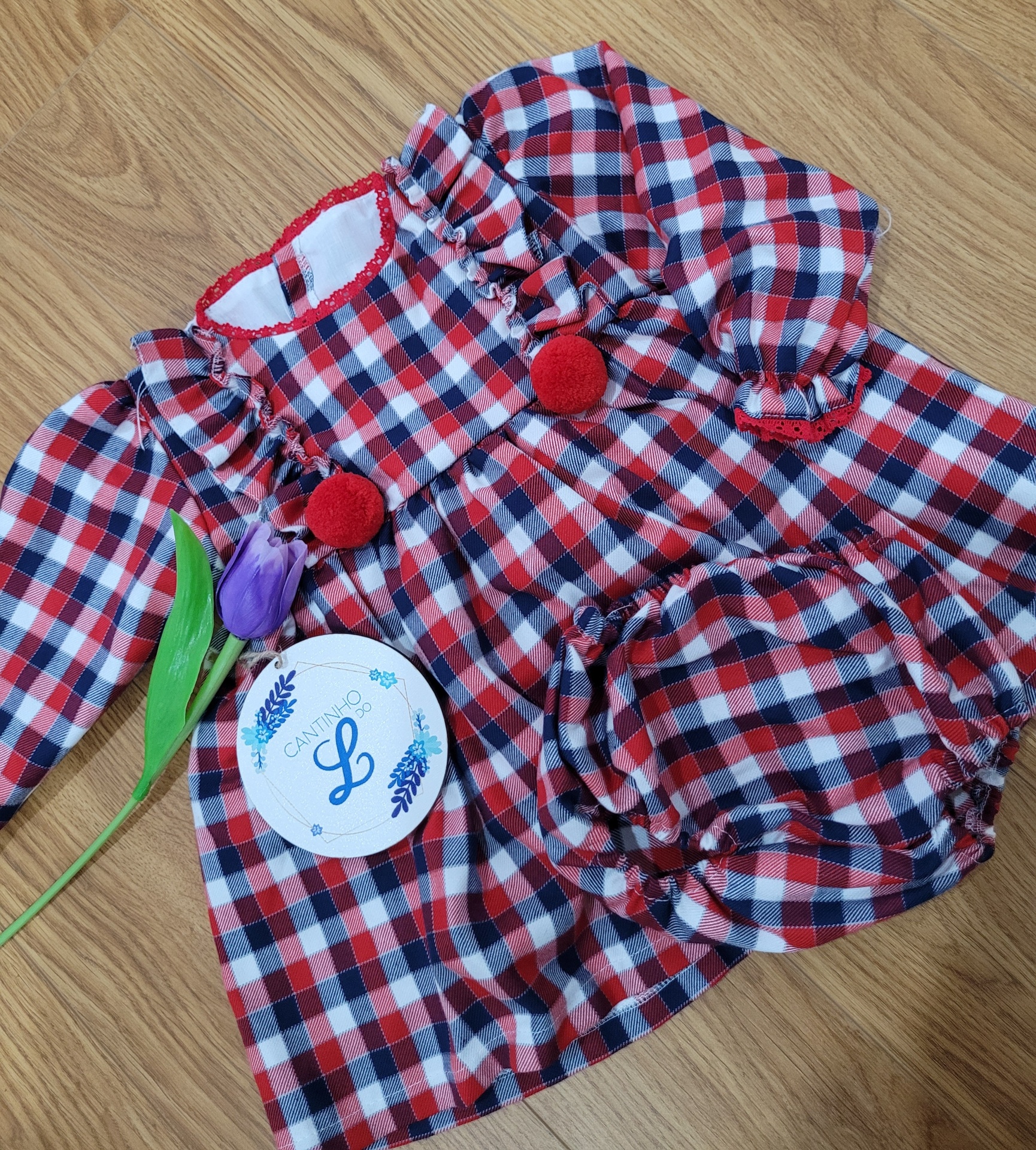 Vestido Xadrez pompom Avermelhado 22,50 € Desconto de %. Partilhar Tamanho 24-36m Comprar Contactar Vestido super lindo com cueca tapa fralda... Os tons em xadrez cheiram a Natal e o pompom dá-lhe um toque tão fofinho... O modelo é de vestir curto a se ver o tapa fralda...